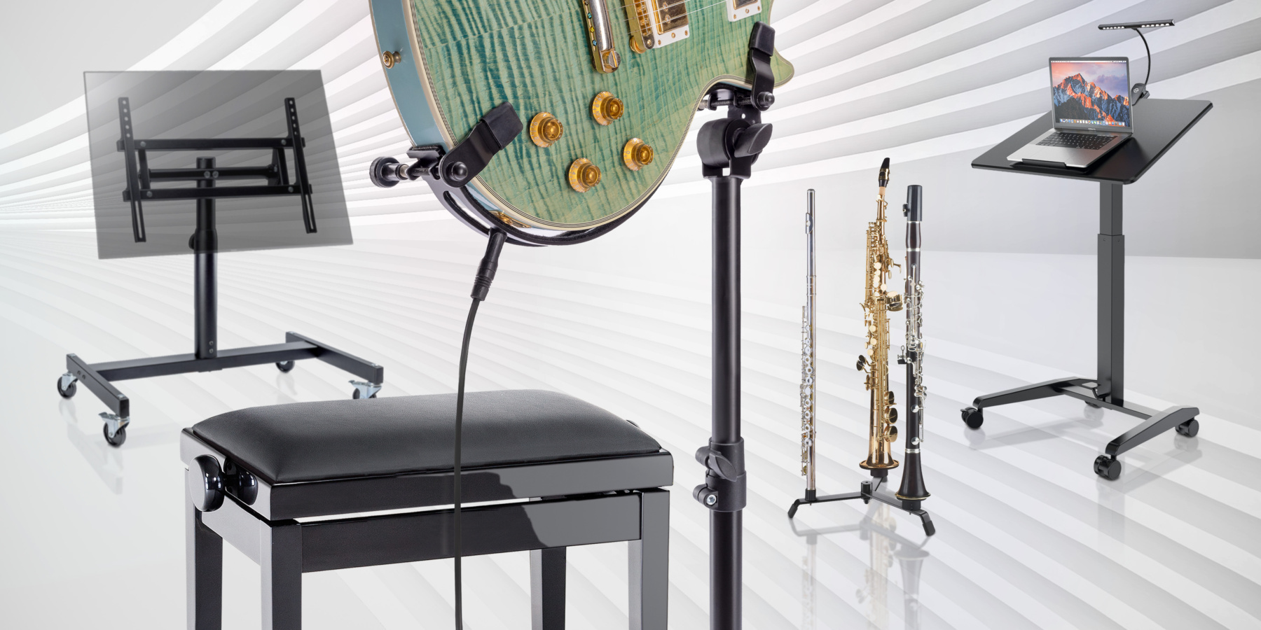 We have developed our new stands, seats, and accessories to make daily use easier: ergonomic, robust, and flexible – and designed for real-world musicians. Here you can find an overview of the new products.